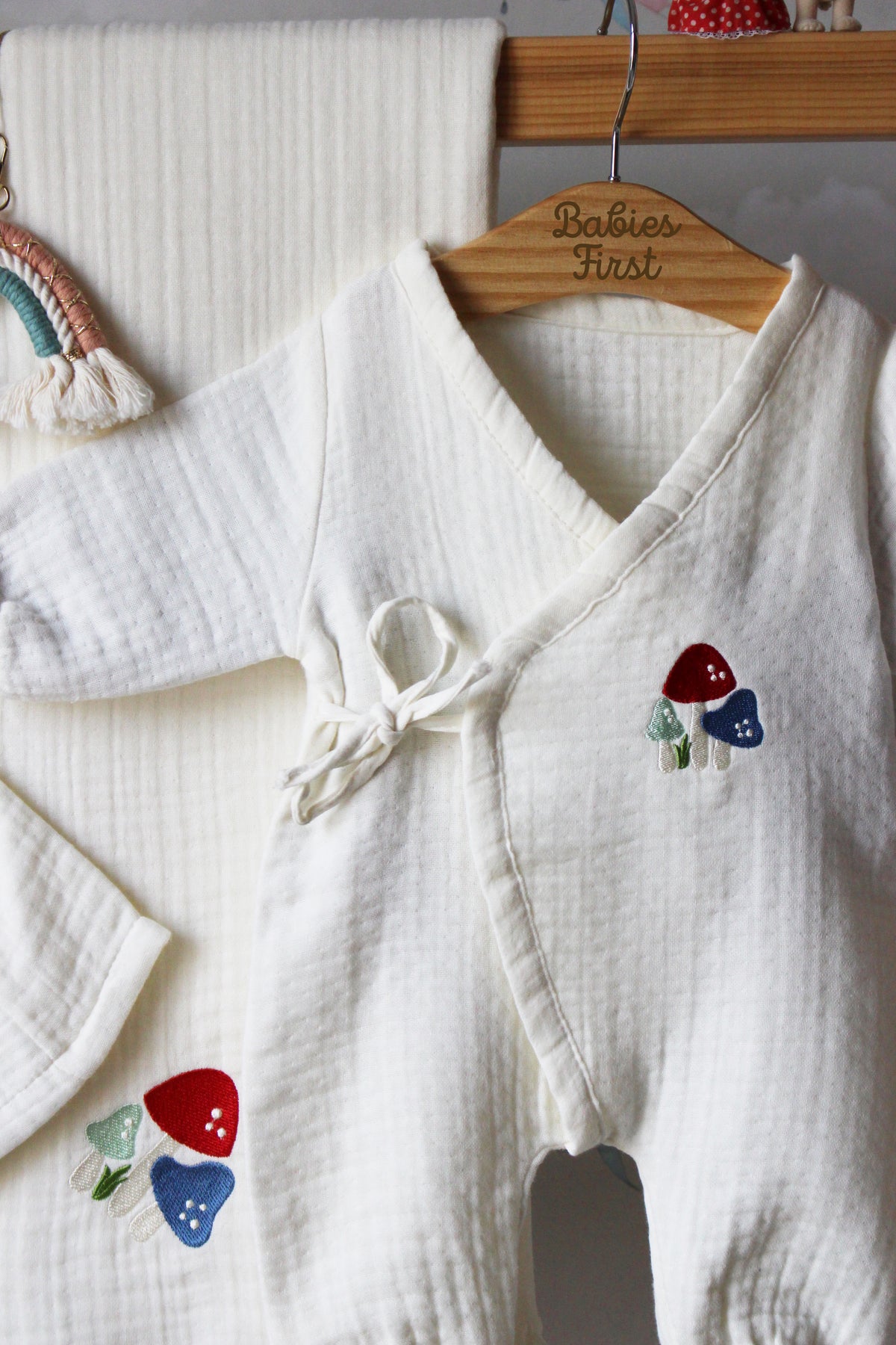 Bebeğinizin ilk günlerinden itibaren yumuşaklığı ve sadeliğiyle vazgeçilmeziniz olacak bu özel set, hem günlük kullanım hem de hastane çıkışı için mükemmeldir.
