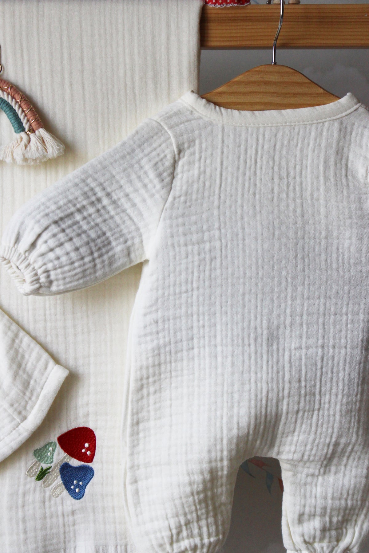 1 Adet uzun kollu müslin tulum (yan bağlamalı kolay giydirme)