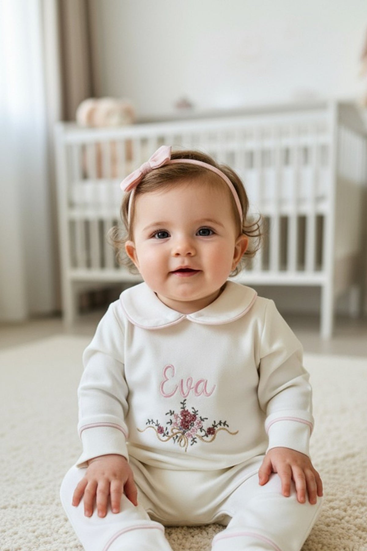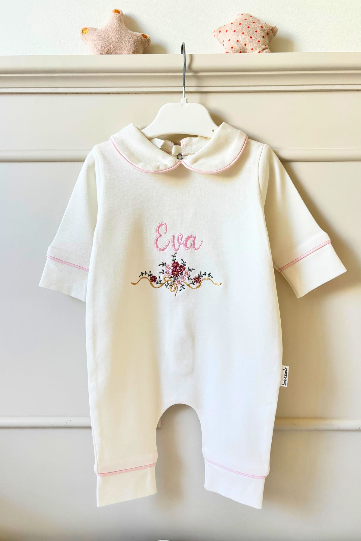 ✔️ Şık, uzun kollu tulum – çiçek ve isim nakış detaylı