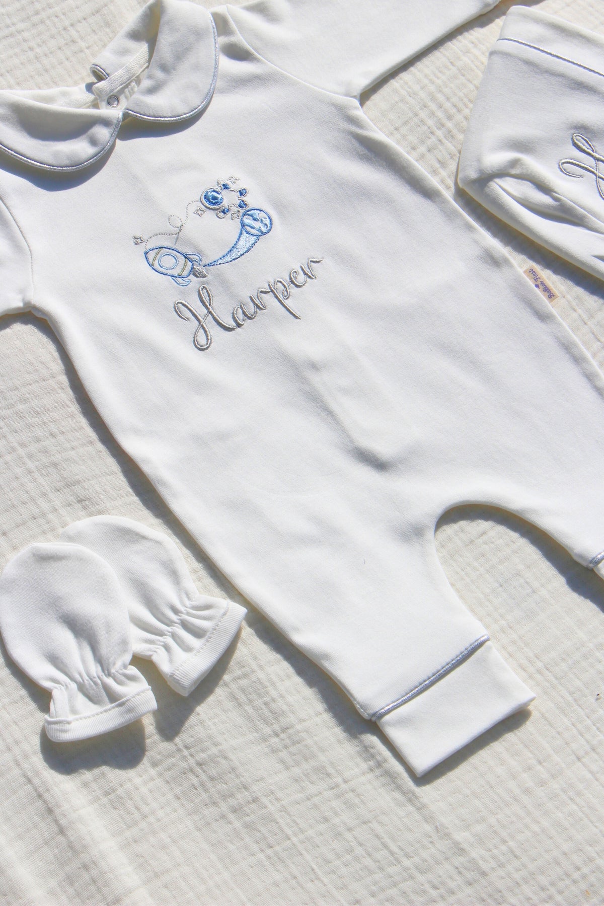Organik Pamuk Bebek Tulum Seti – Nakışlı Lüks Yeni Doğan Çıkış Seti